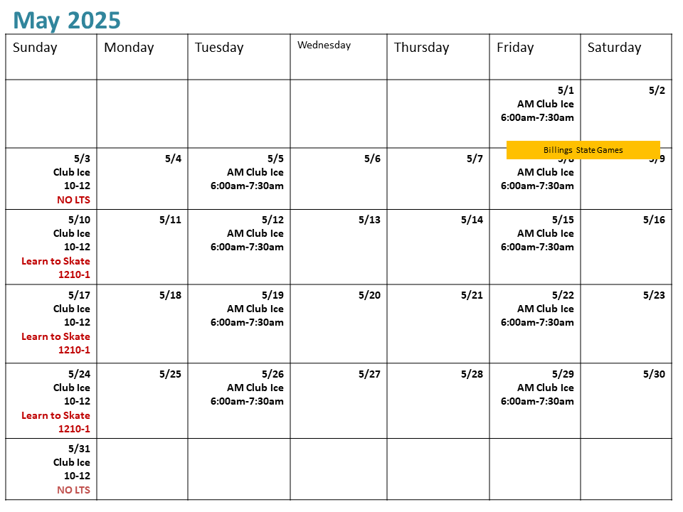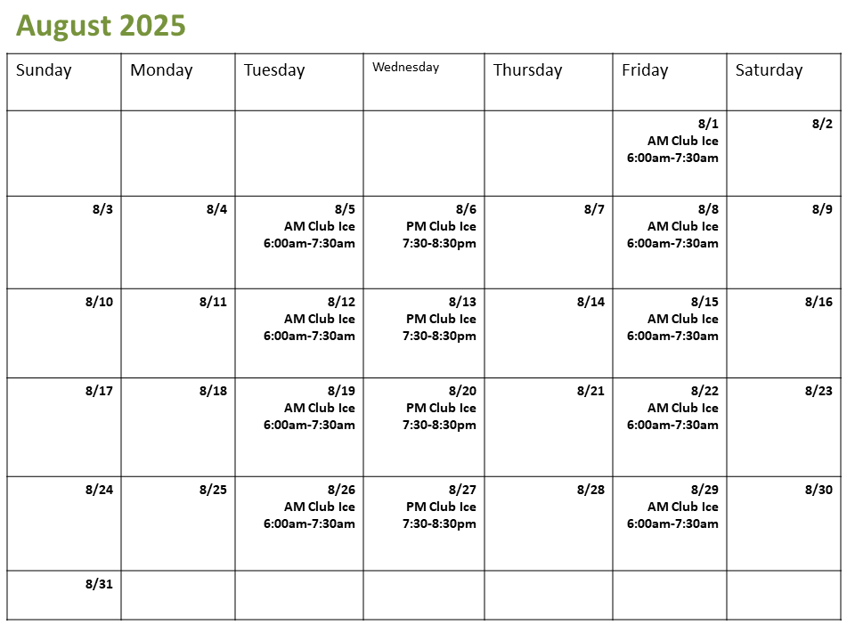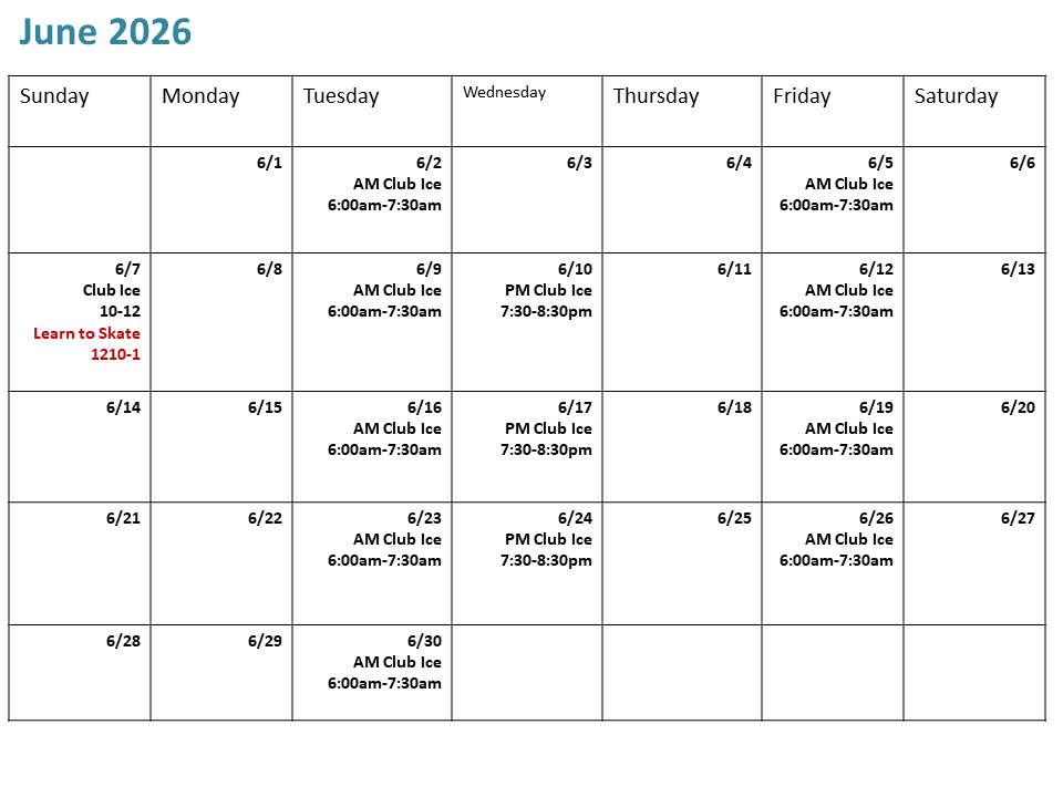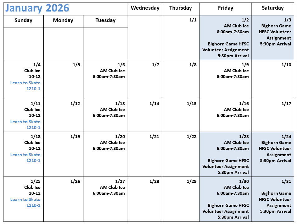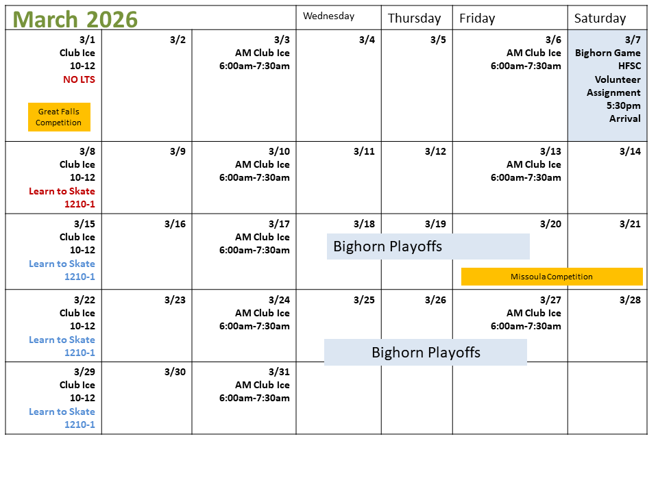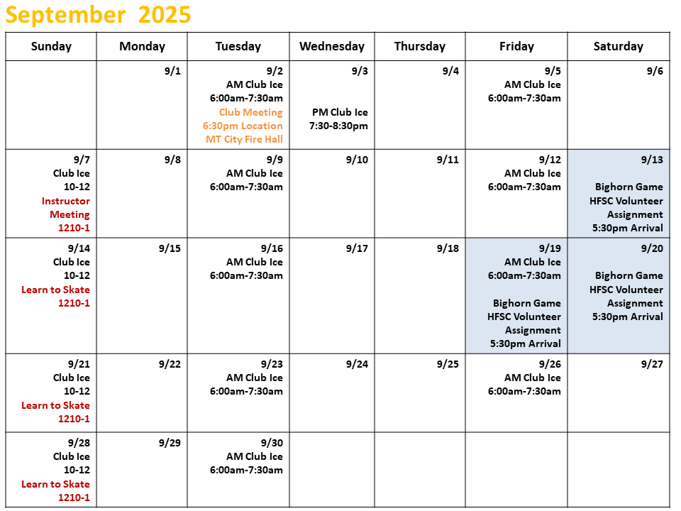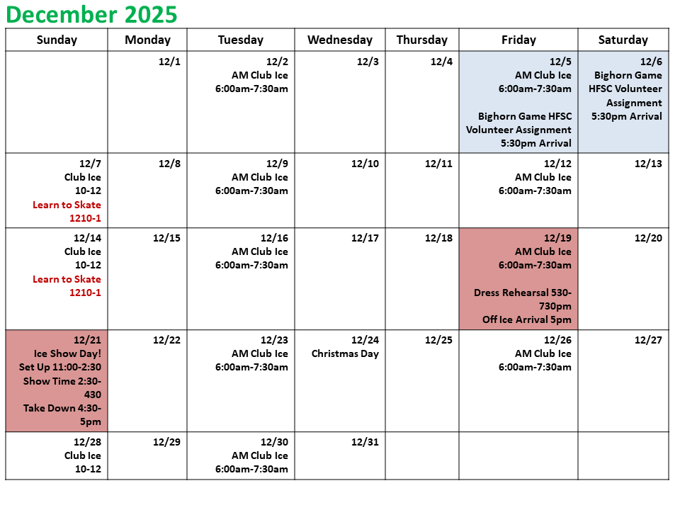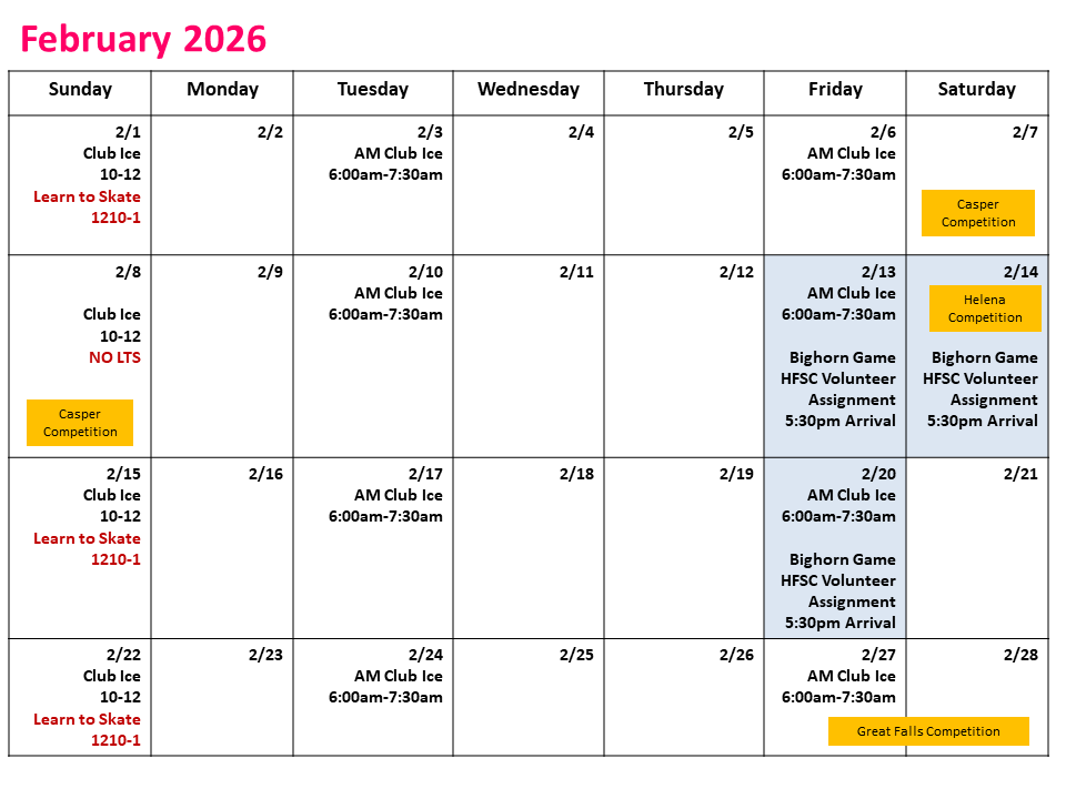 Helena Figure Skating Club Monthly Calendar 2025-2026 Season!